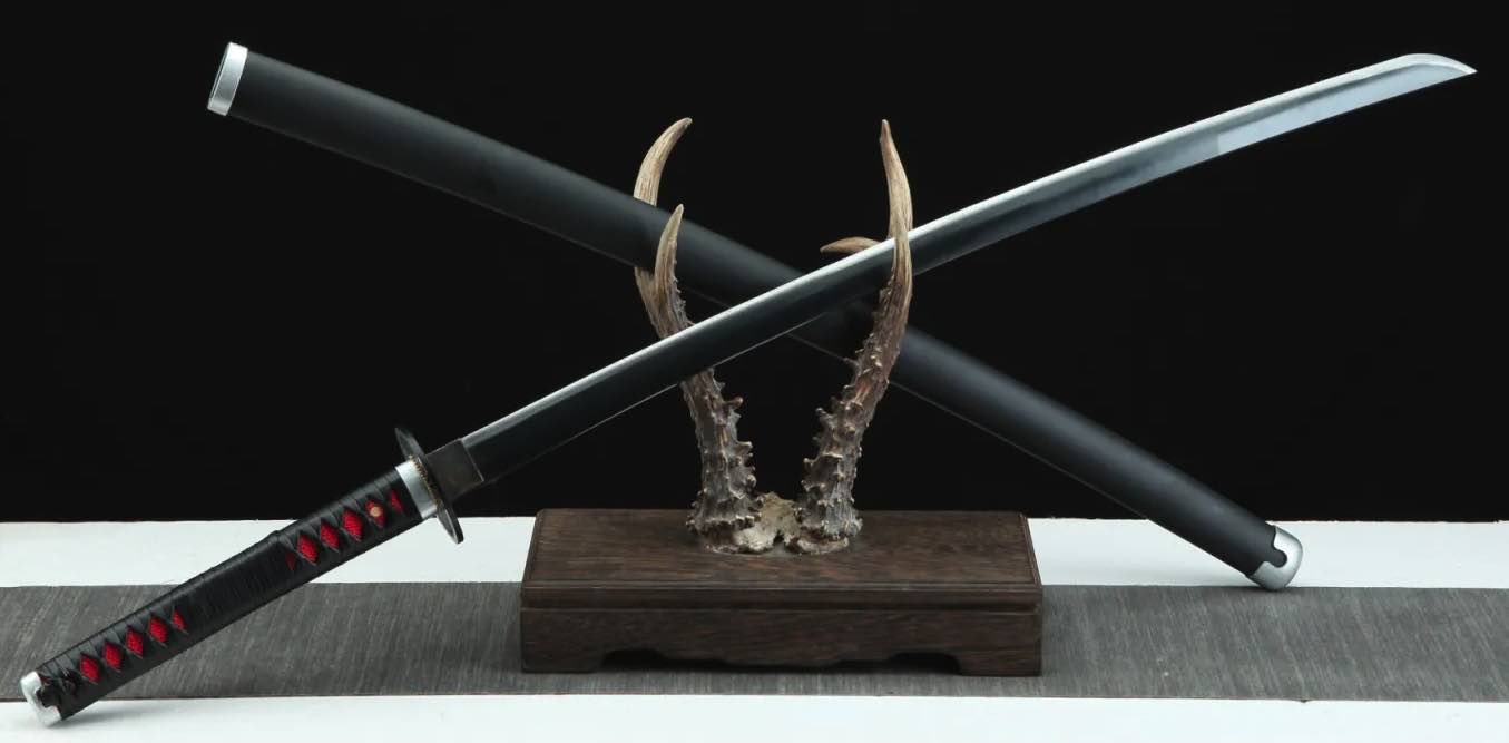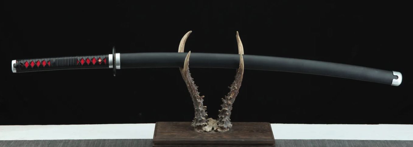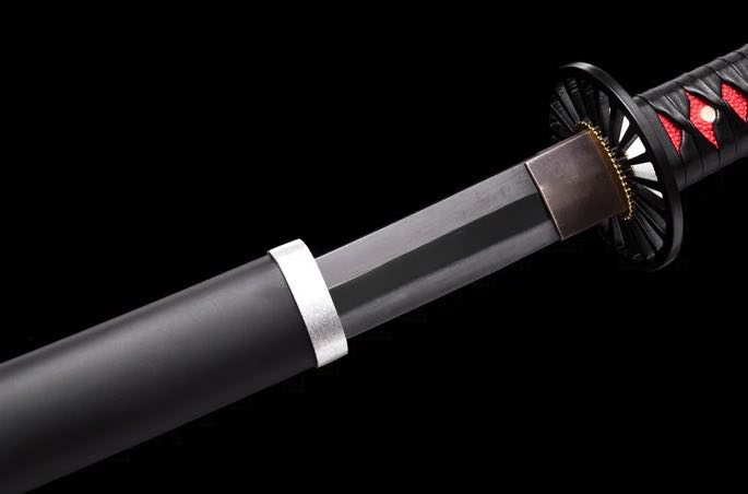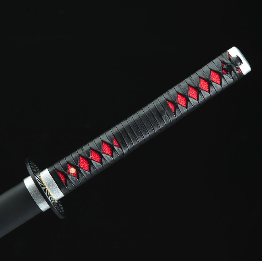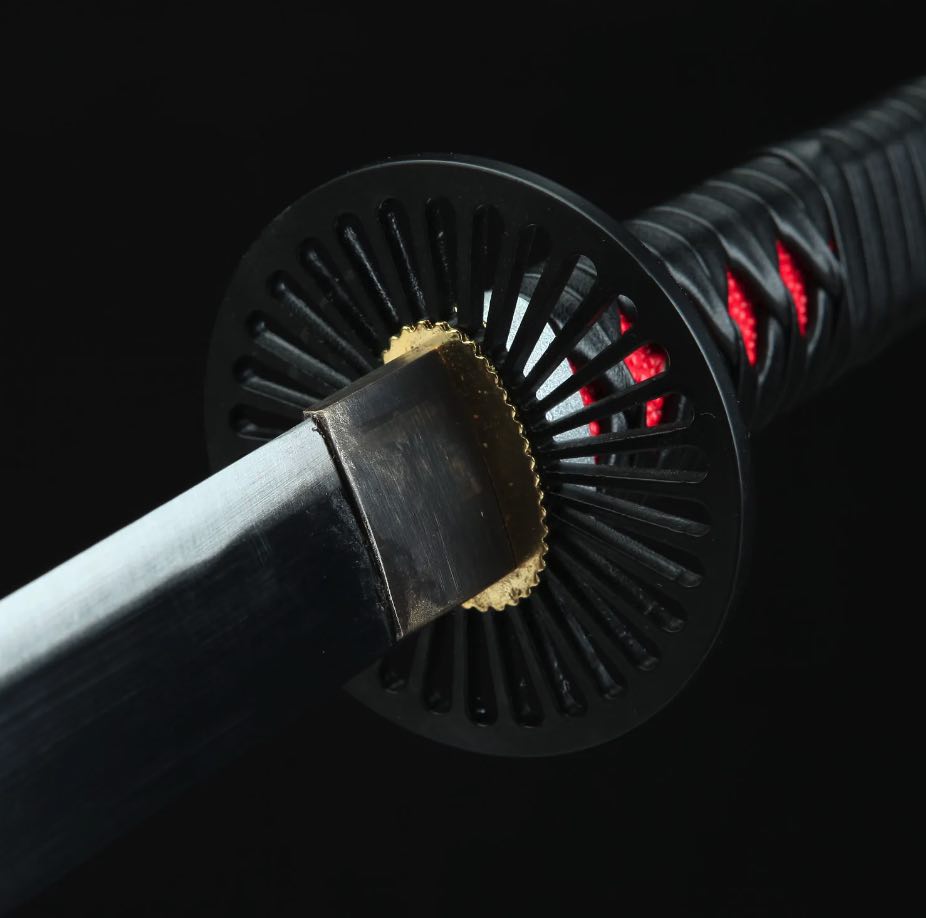 - Lemmet: Het diepzwarte lemmet symboliseert kracht en vastberadenheid. Het heeft een lichte kromming, typisch voor Japanse zwaarden, met een elegante helling naar de punt toe.