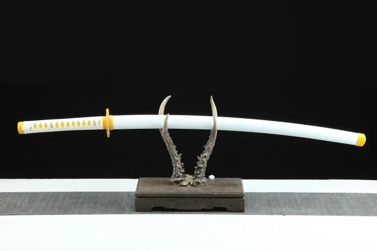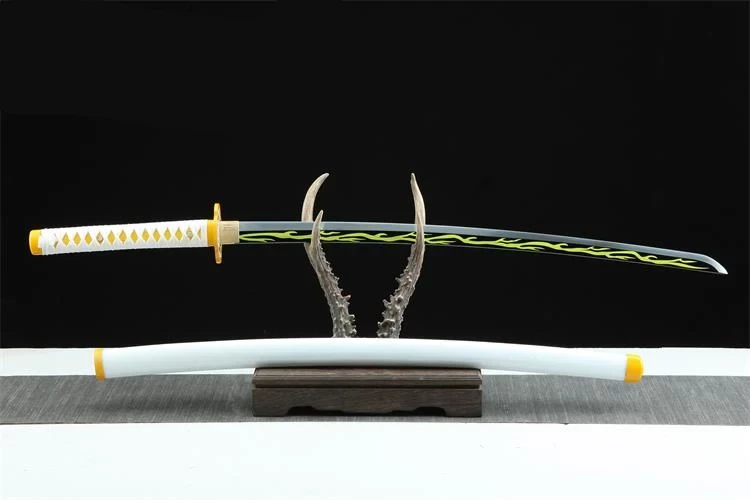 Dit stalen katana-zwaard is een perfecte replica van Zenitsu Agatsuma’s Sun Blade uit de anime Demon Slayer. Het ontwerp weerspiegelt het meesterschap van het personage over bliksem en elektriciteit.