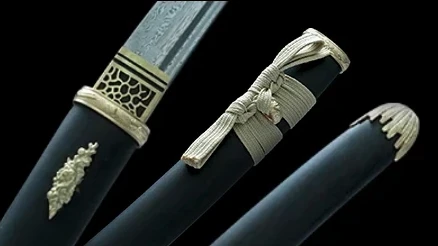 - Tsuka (柄): handvat van ebbenhout, zonder Tsuka-ITO (vlechtwerk), met een ruwe uitstraling.