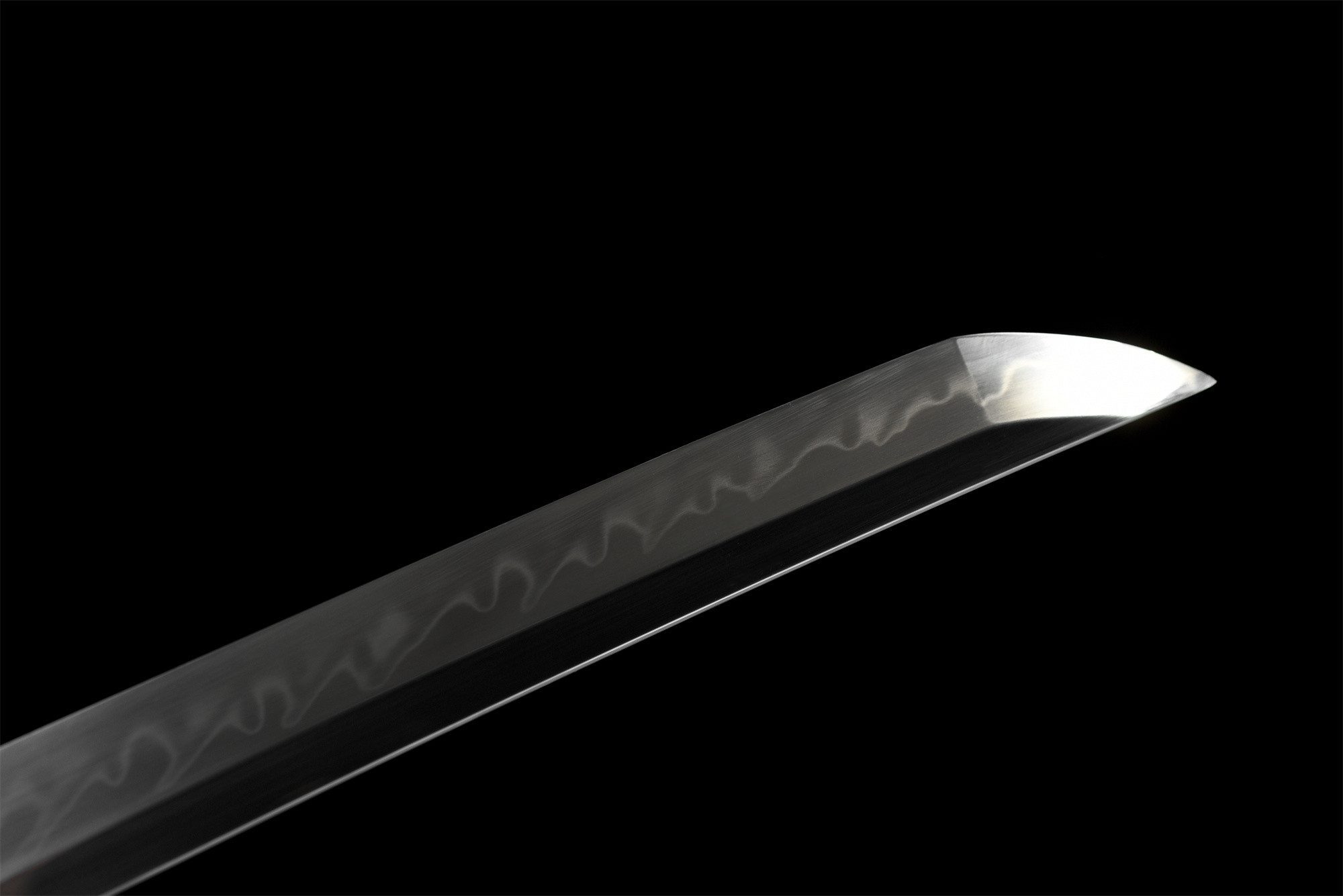 - Hamon (刃文): Echte Midare hamon verkregen door differentieel harden.