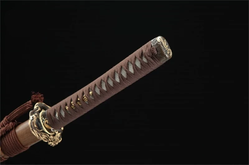 - Tsuka-ITO (柄糸): bruin, gevlochten boven het ruitvormige handvat.