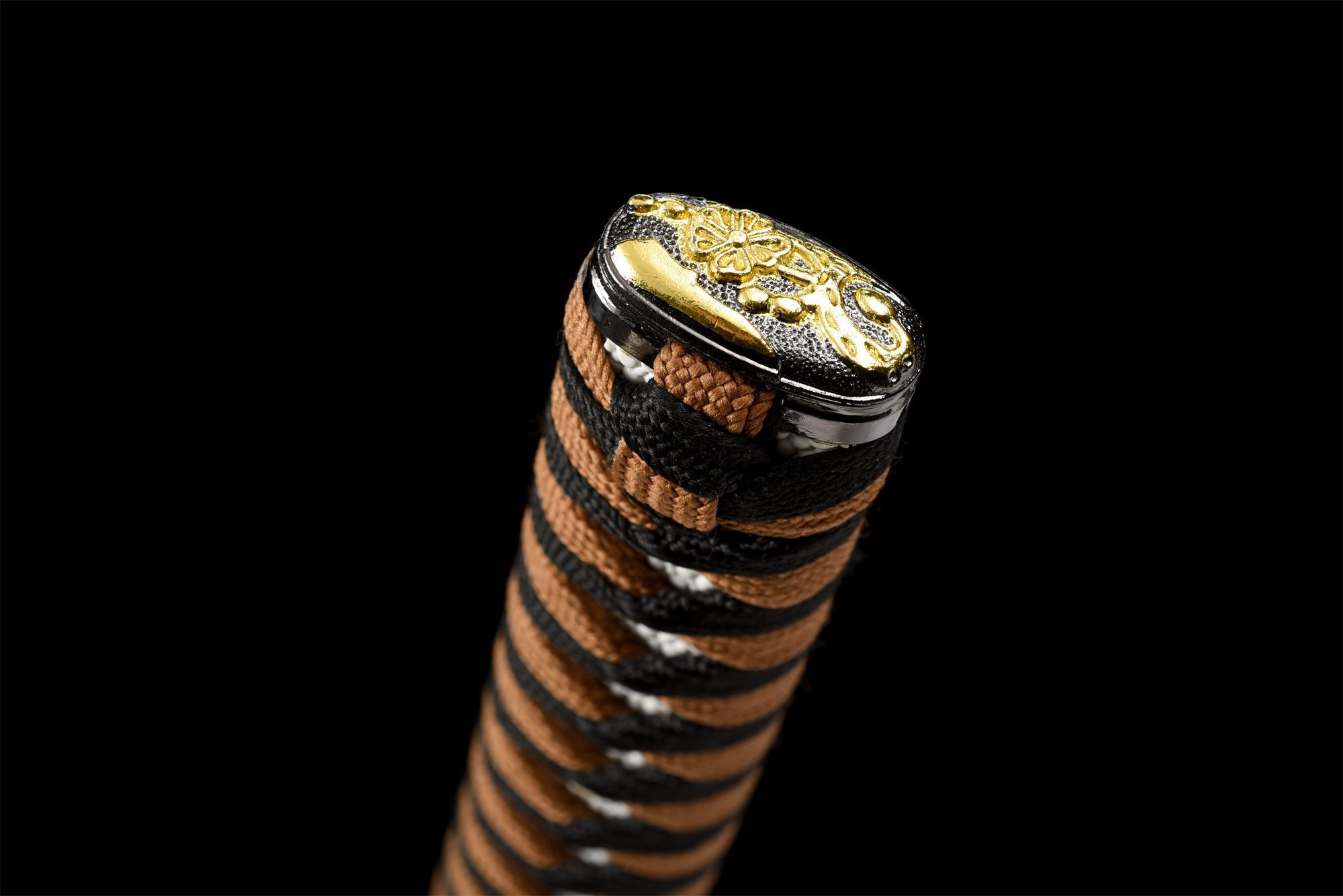 - Tsuka-ITO (柄糸): Bruin en zwart gevlochten boven het handvat, ruitpatroon.