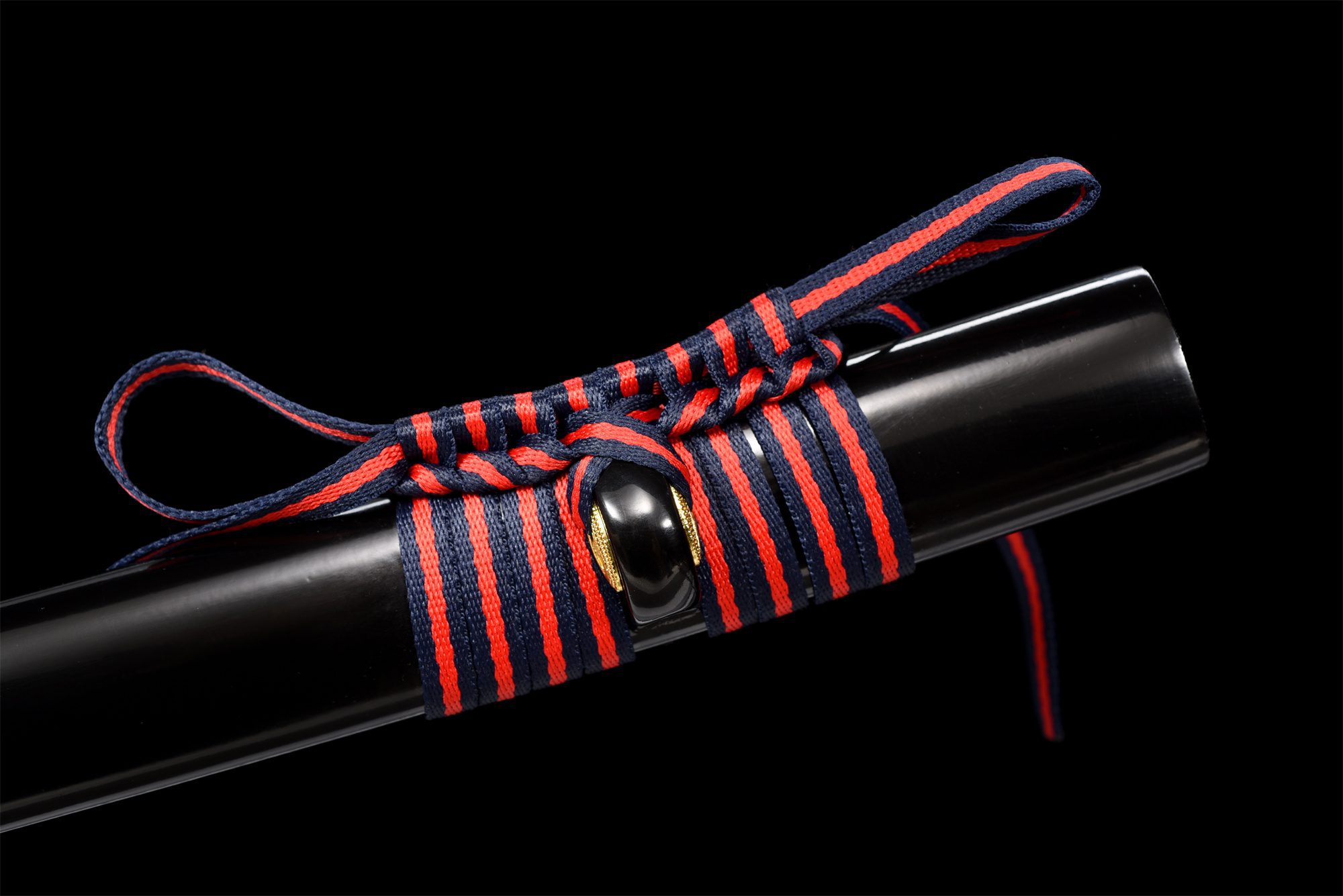 - Tsuka-ITO (柄糸): Blauw en rood geweven in een ruitpatroon.