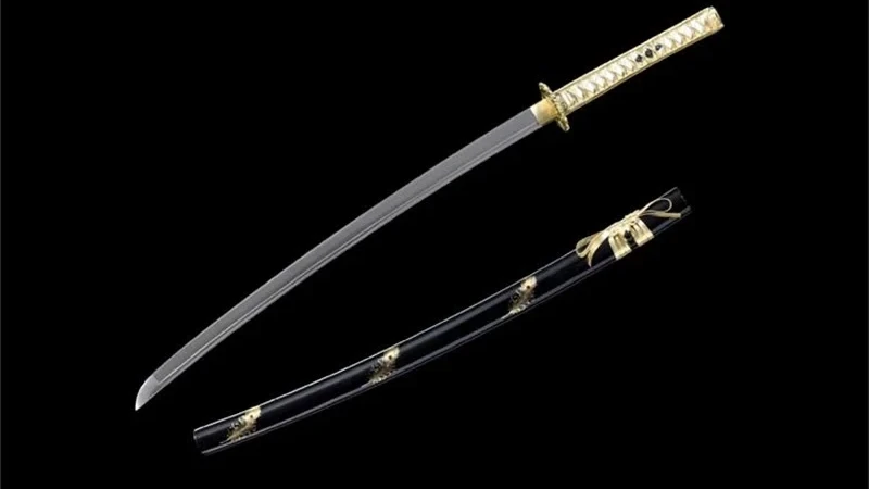 Het Ten no yari (天の槍) Katana-zwaard, ook wel bekend als de Hemelse Speer, heeft een 72 cm lang lemmet van t10-staal en een handvat bekleed met synthetisch wit shagreenleer en omwikkeld met een prachtige gouden Tsuka-Ito. De nauwkeurig gebeeldhouwde gouden beschermkap doet denken aan de vloeiende bewegingen van golven en wind, maar ook aan de schubben van vissen of draken, de draken die op de Menuki te vinden zijn. Ten slotte maakt de zwarte schede, versierd met gouden veren, dit prachtige Katana-zwaard compleet.