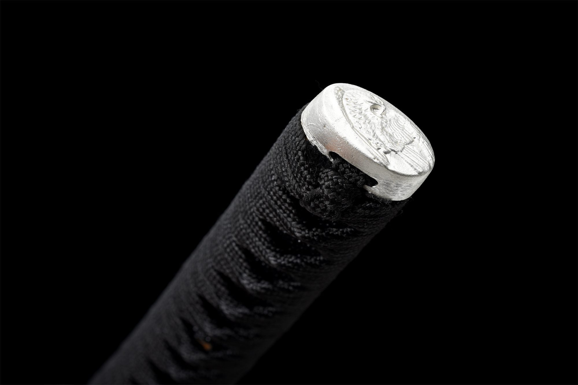 - Tsuka-ITO (柄糸): Zwarte diamantvlechtwerk boven het handvat.
