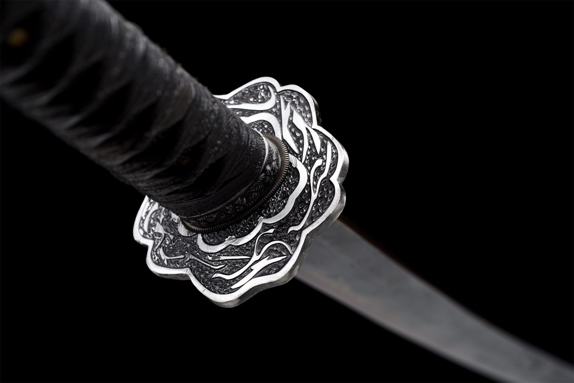- Fuchi (縁): Verzilverd en gegraveerd.