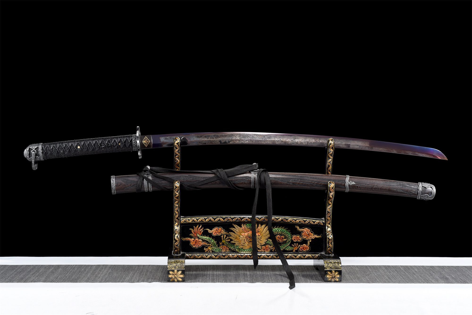 - Menuki (目貫): Zwarte draak.